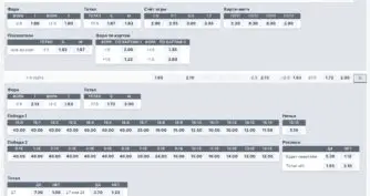 Открыв превью события, вы сразу увидите 6 вариантов пари: исход, тотал (минусовой и плюсовой), фора и двойной шанс. Такая особенность позволяет быстро сделать ставку, не открывая страницу матча.