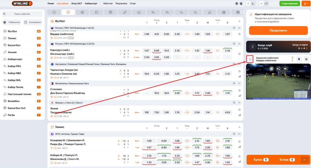 - букмекерская компания «Винлайн» (доступно только клиентам БК после авторизации).