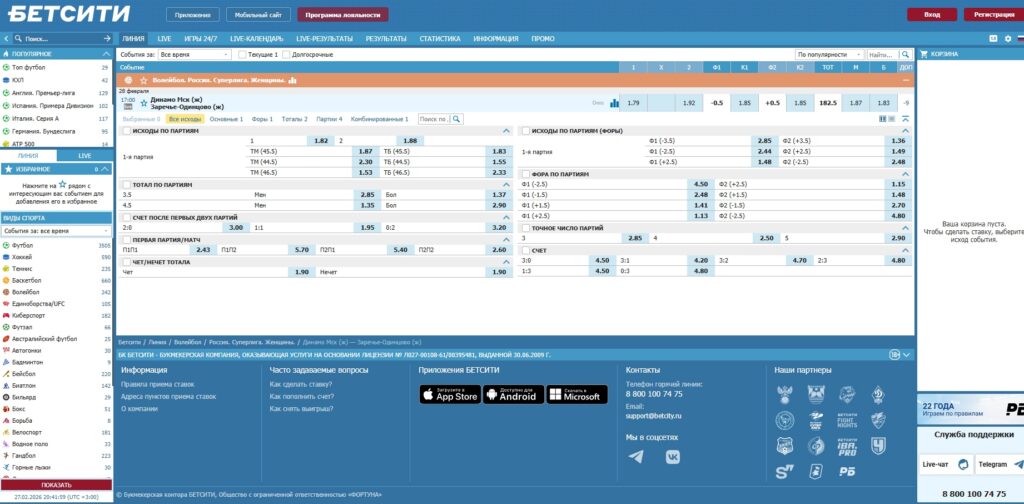- онлайн-трансляция на платформе БК «Бетсити» после регистрации и входа в ЛК.