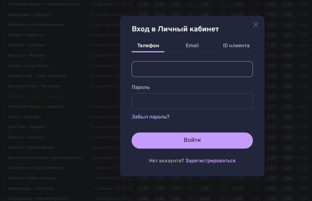- Войди в свой аккаунт на сайте или в приложении букмекерской конторы Беттери.