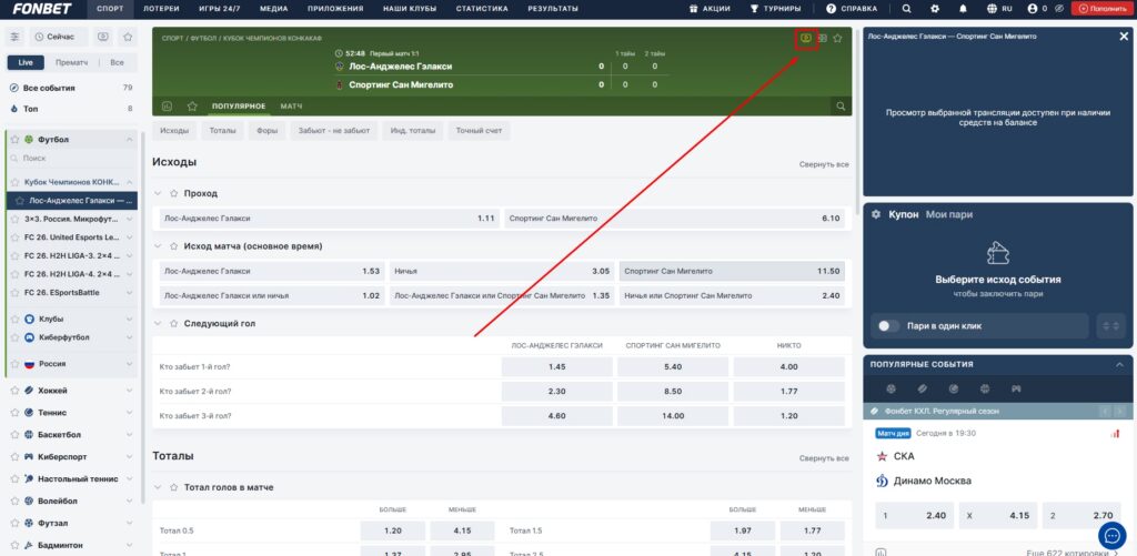 Также игру можно посмотреть на платформе легальных букмекеров. Просмотр возможен как на официальном сайте, так и через приложение. Трансляция доступна после регистрации и входа в кабинет. Однако в отдельных случаях может потребоваться наличие средств на балансе или активное пари – условия доступа уточните у выбранного оператора.
